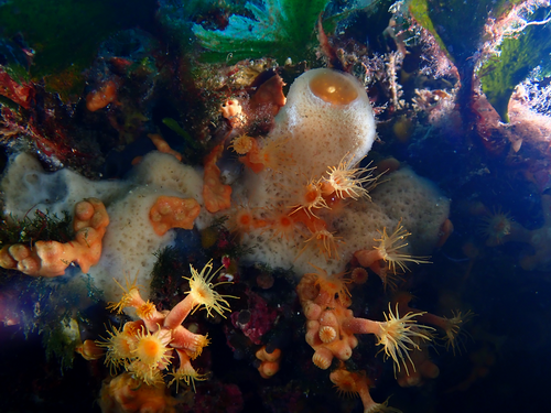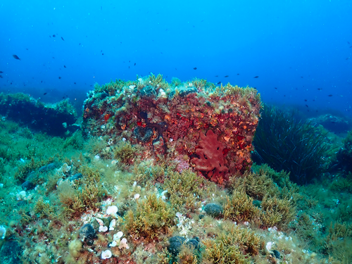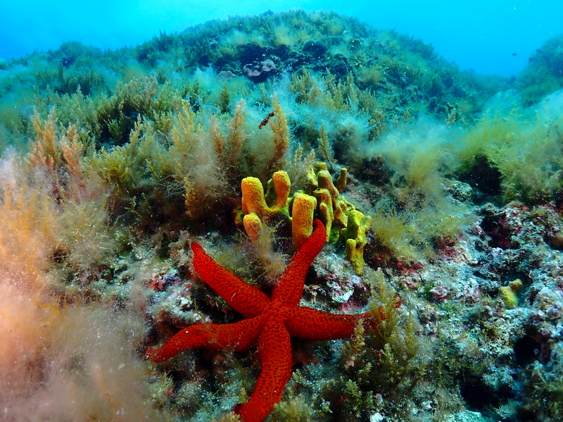 Stene so tu izjemno bogato poraščene. Definitivno pa večino potapljačev privlačijo gorgonije, ki se nahajajo pod globino 30 m.